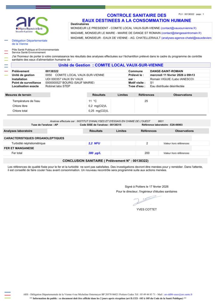 AFFICHAGE CONTRÔLE DES EAUX DISTINÉES À LA CONSOMMATION HUMAINE