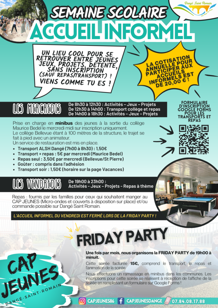 Le CAP JEUNES de Dangé-Saint-Romain est géré par la Commune de Dangé-Saint-Romain et accueille des jeunes à partir de 11 ans inscrits au collège et jusqu’à 18 ans issus des communes de l’ancienne Communauté de Communes Les Portes du Poitou.