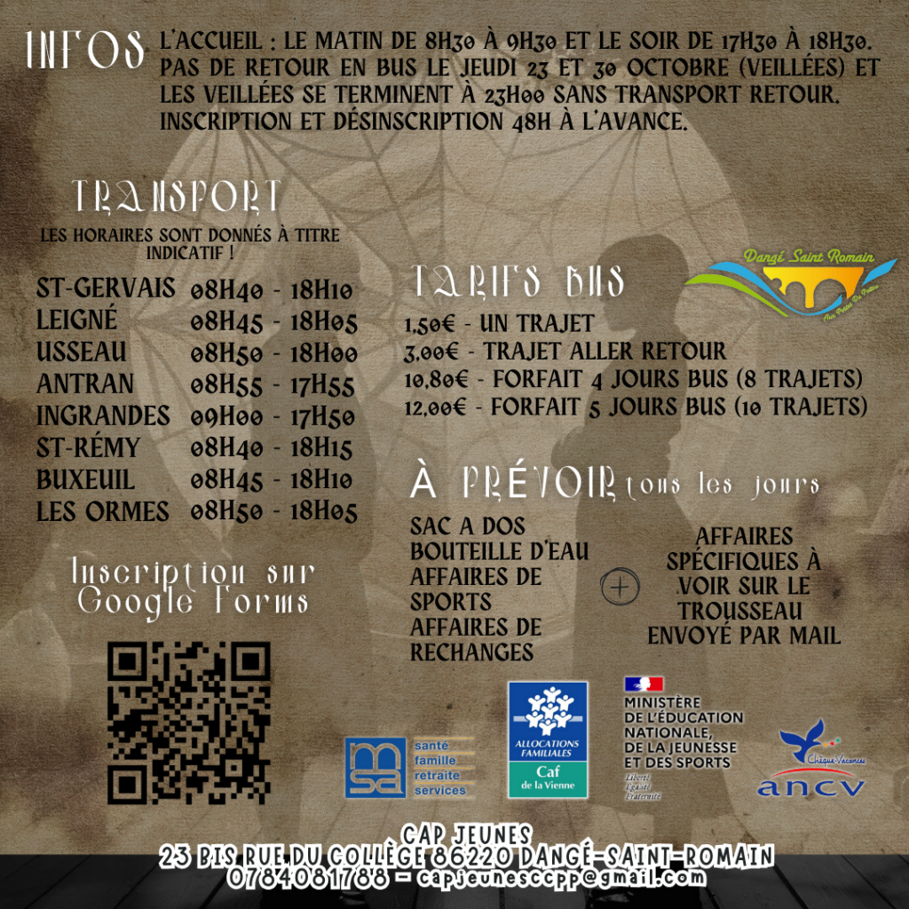 Le CAP JEUNES vous accueille au 23 bis rue du collège à Dangé-Saint-Romain. L’équipe a mis en place un accueil permettant aux jeunes de s’épanouir en toute sécurité.