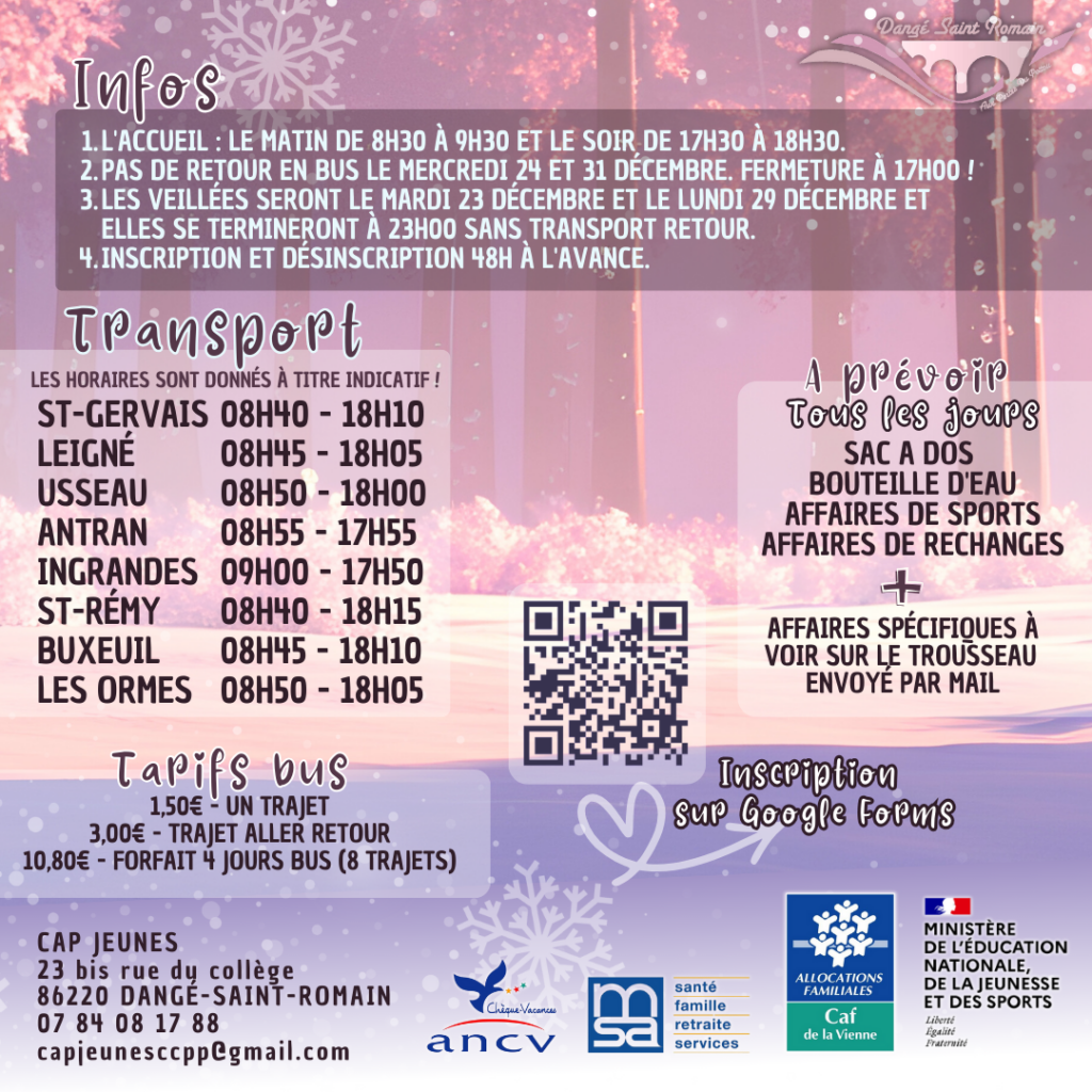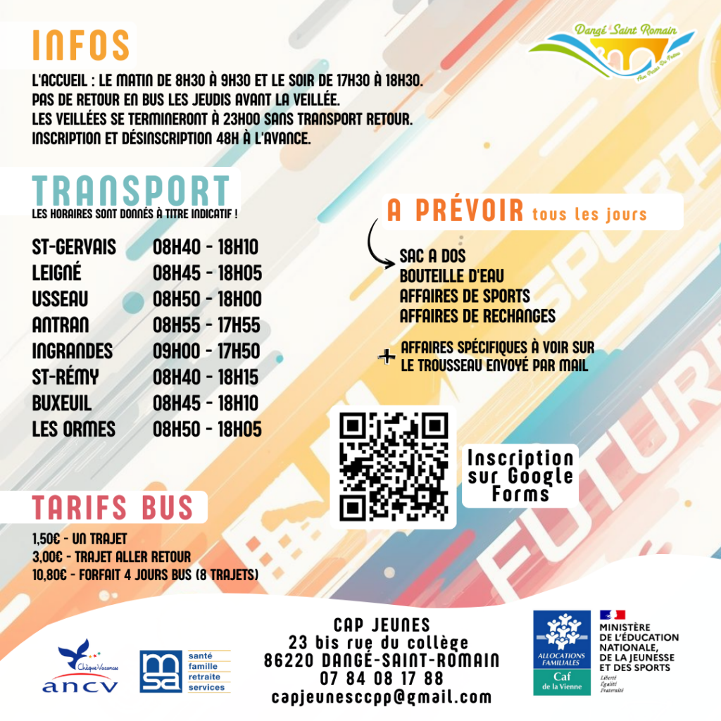 Le CAP JEUNES vous accueille au 23 bis rue du collège à Dangé-Saint-Romain. L’équipe a mis en place un accueil permettant aux jeunes de s’épanouir en toute sécurité.