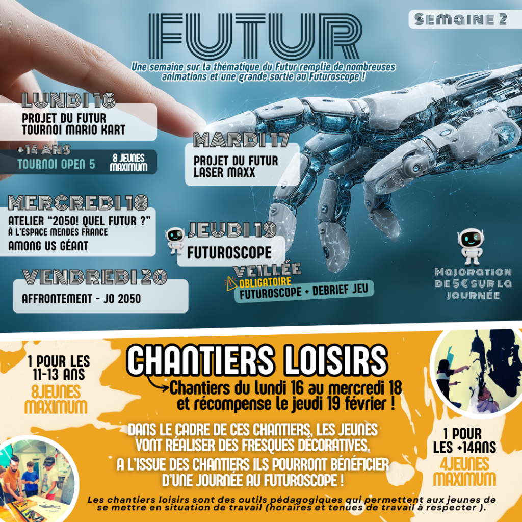 Ouvert de 8h30 à 18h30, l’accueil se fait entre 8h30 et 9h30 le matin et le départ le soir entre 17h30 et 18h30. L’inscription sera à la journée obligatoire afin d’être en cohérence avec le projet pédagogique de la structure. Autour d’un projet, chaque semaine les jeunes seront acteurs de leurs vacances et ils participeront à de nombreuses sorties.