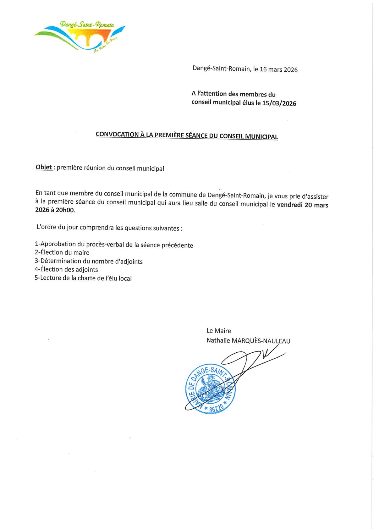 Calendrier Quand : 20 mars 2026 @ 20 h 00 min – 23 h 45 min 2026-03-20T20:00:00+01:00 2026-03-20T23:45:00+01:00 Où : SALLE DU CONSEIL 5 Pl. de la Promenade 86220 Dangé-Saint-Romain France Contact : MAIRIE 05.49.86.40.01