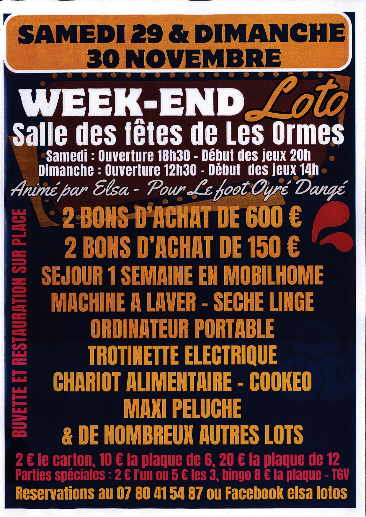 Calendrier Quand : 29 novembre 2025 @ 20 h 00 min – 23 h 55 min 2025-11-29T20:00:00+01:00 2025-11-29T23:55:00+01:00 Où : SALLE DES FÊTES 86220 Les Ormes France Contact : ELSA LOTOS 07.80.41.54.87