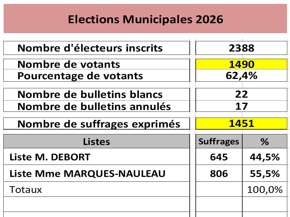 RÉSULTATS DES ÉLECTIONS MUNICIPALES DU 15/03